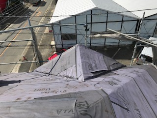 1階の屋根の施工です。 棟包み板金を解体、撤去。