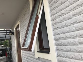 塗装で汚れない様に、窓ガラスなどビニール養生をします。