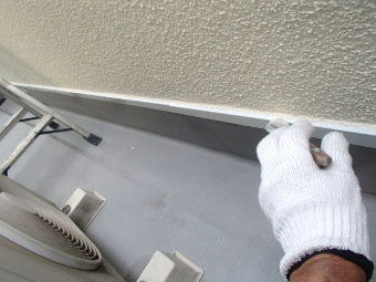 ↓■ひび割れ処理の様子です。 ベランダ廻りには多く出やすいですね。