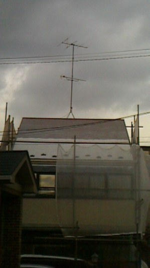 間もなく、完了します。 明日、足場を解体したいと思いますので、上部の清掃、仕上げを |