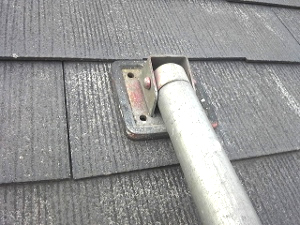 スレート屋根 足場絡み 下塗り (昨日洗浄箇所)