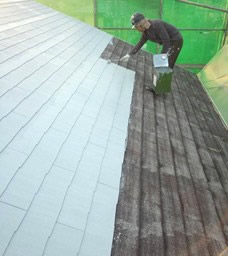 屋根塗装 上塗り シリコン塗装 (4回塗りのうち 4回目の塗装)