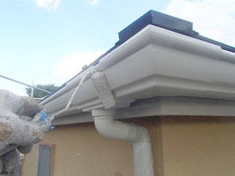 付帯部の破風板も、ラジカル制御高耐候塗装。中塗り、上塗り。