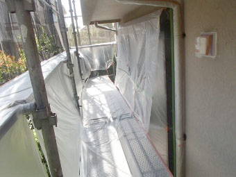 同じく昨日下塗り密着プライマーの霧除けも、ラジカル制御高耐候塗装。